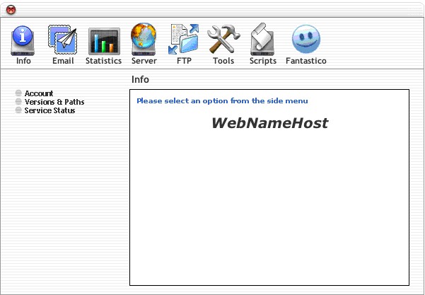 Besides offering the industry standard cPanal product for end users, WebNameHost is also pleased to offer cPanel skins with deluxe features for discriminating users. The Universina skin has the default look and feel of Mac OSX (aqua) while offering users access to all the cPanel features. It also can be changed to look more like the standard x2 skin, or dressed in various other clothes--all at the unser's command. The aqua version (once called xController) appears below.