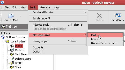 the main menu, then Message Rules,